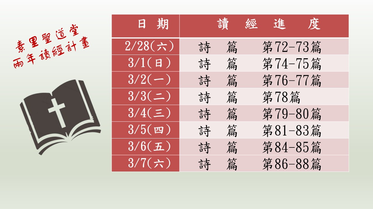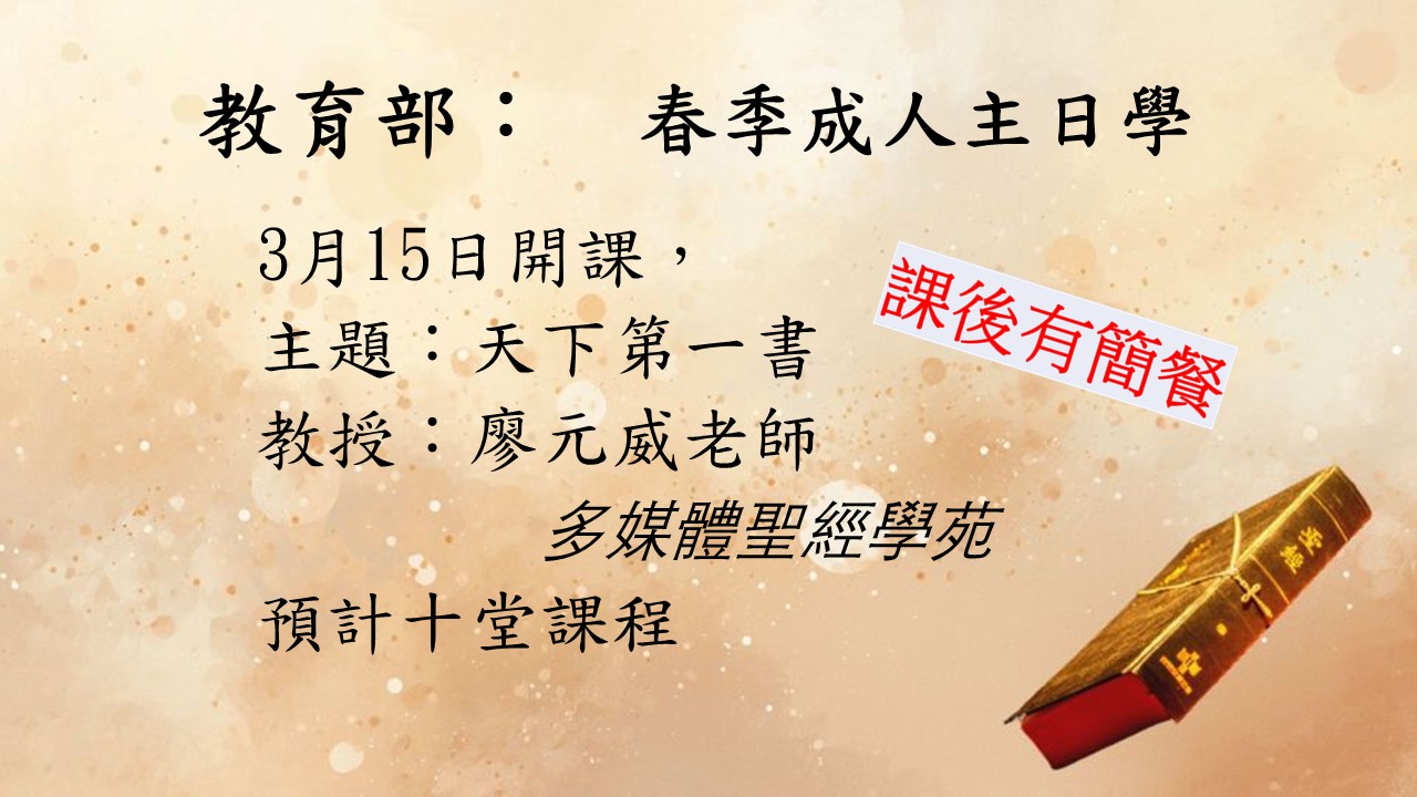 成人主日學於主日崇拜後(約11:45)開始上課